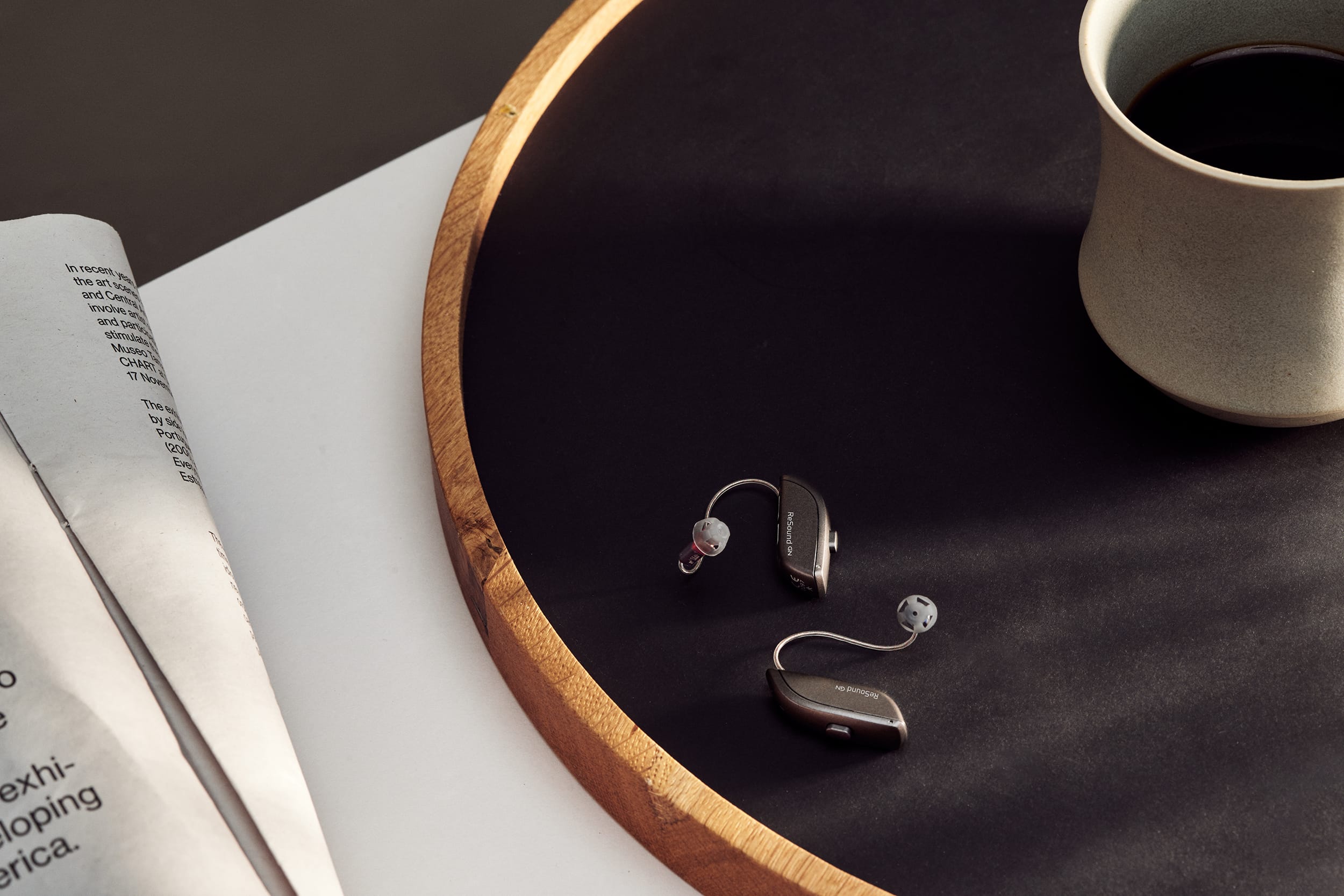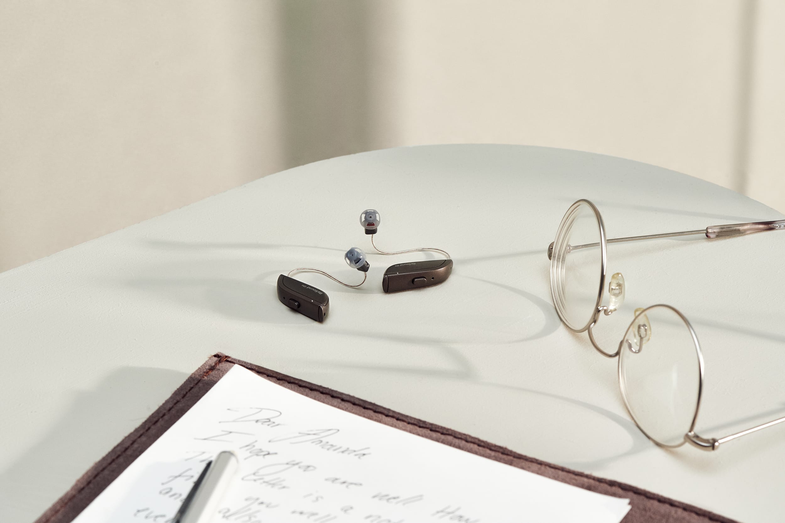 This high-end hearing aid photoshoot focuses on clean graphical shapes, diffused daylight, and natural tones that create a sculptural, minimal aesthetic that in turn highlights the product’s quality and design. Using soft shadows, glass reflections, and textured materials like warm stone, each scene balances realism with artistry—ensuring the product remains the focal point. Carefully curated compositions evoke everyday moments, from a bedside table to a workspace, seamlessly blending functionality with sophistication.